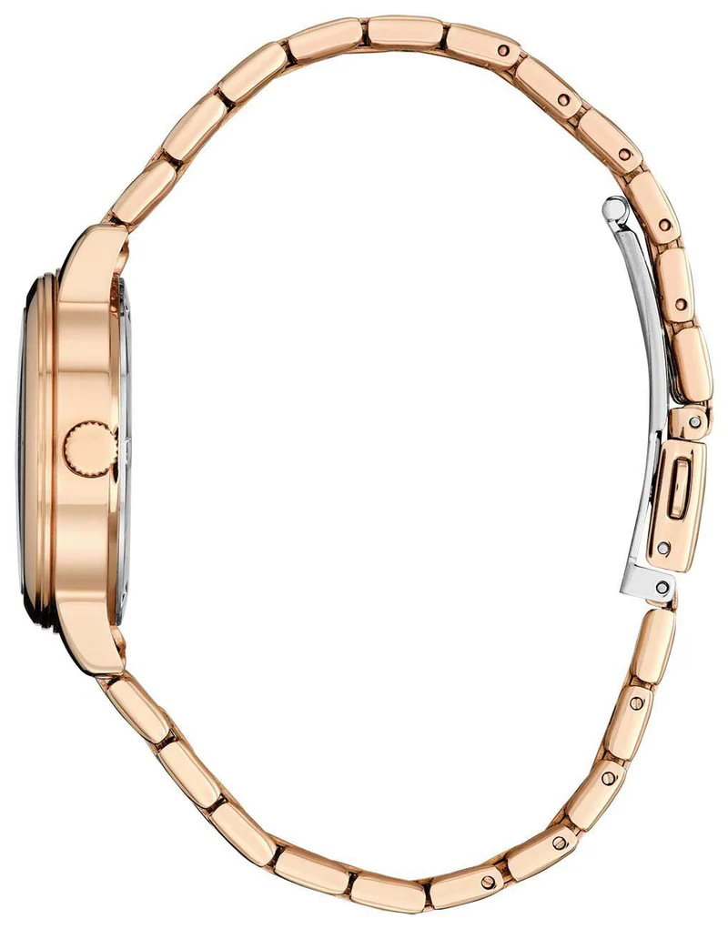 The Citizen Green Dial Women’s Watch EW2623-53X blends timeless elegance with a modern, luxurious touch. Its 34mm rose gold-tone stainless steel case and matching bracelet create a warm, refined aesthetic that pairs beautifully with the deep green dial. Classic Roman numeral hour markers and slim hands enhance its sophisticated look, while a date display at the 3 o’clock position adds everyday practicality. Powered by Citizen’s Eco-Drive technology, this watch runs on any light source—eliminating the need for battery replacements and ensuring dependable performance. Designed for both daily wear and special occasions, the EW2623-53X offers graceful style with the reliability of modern innovation.