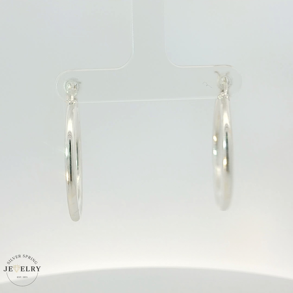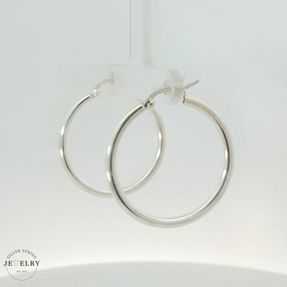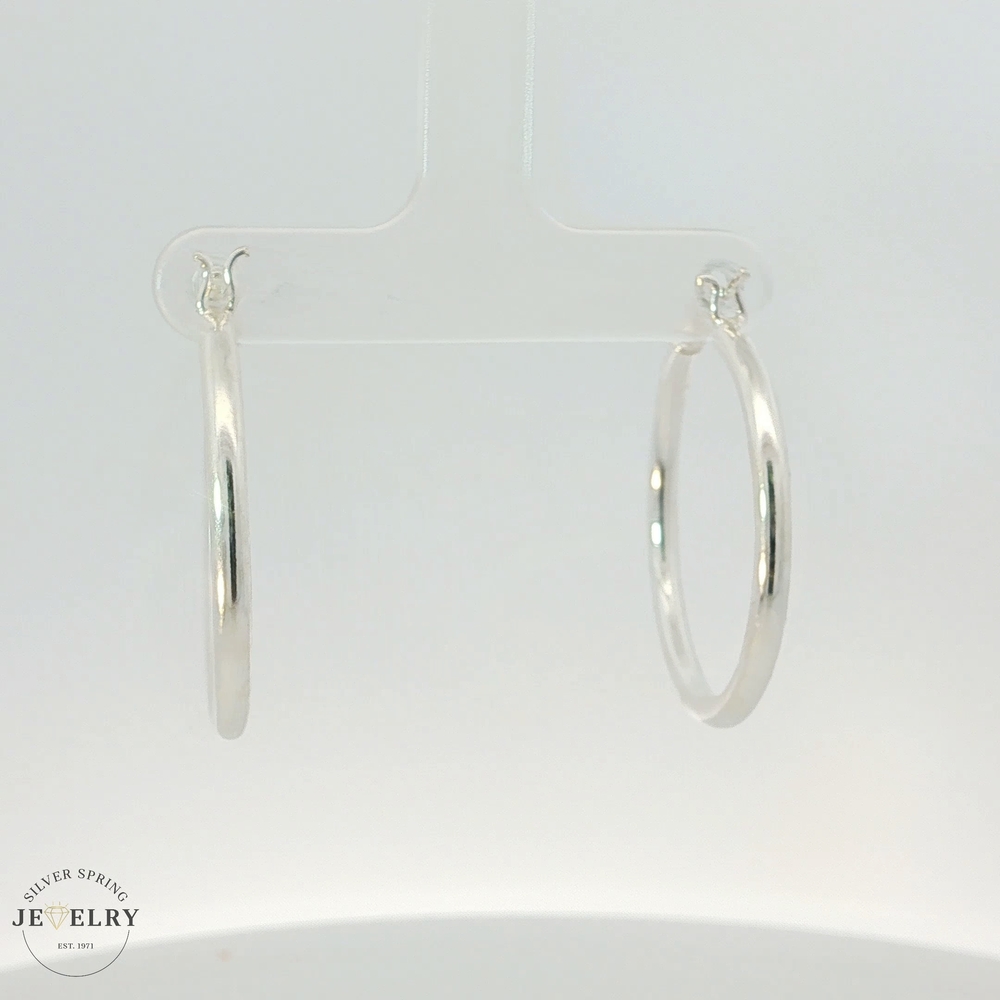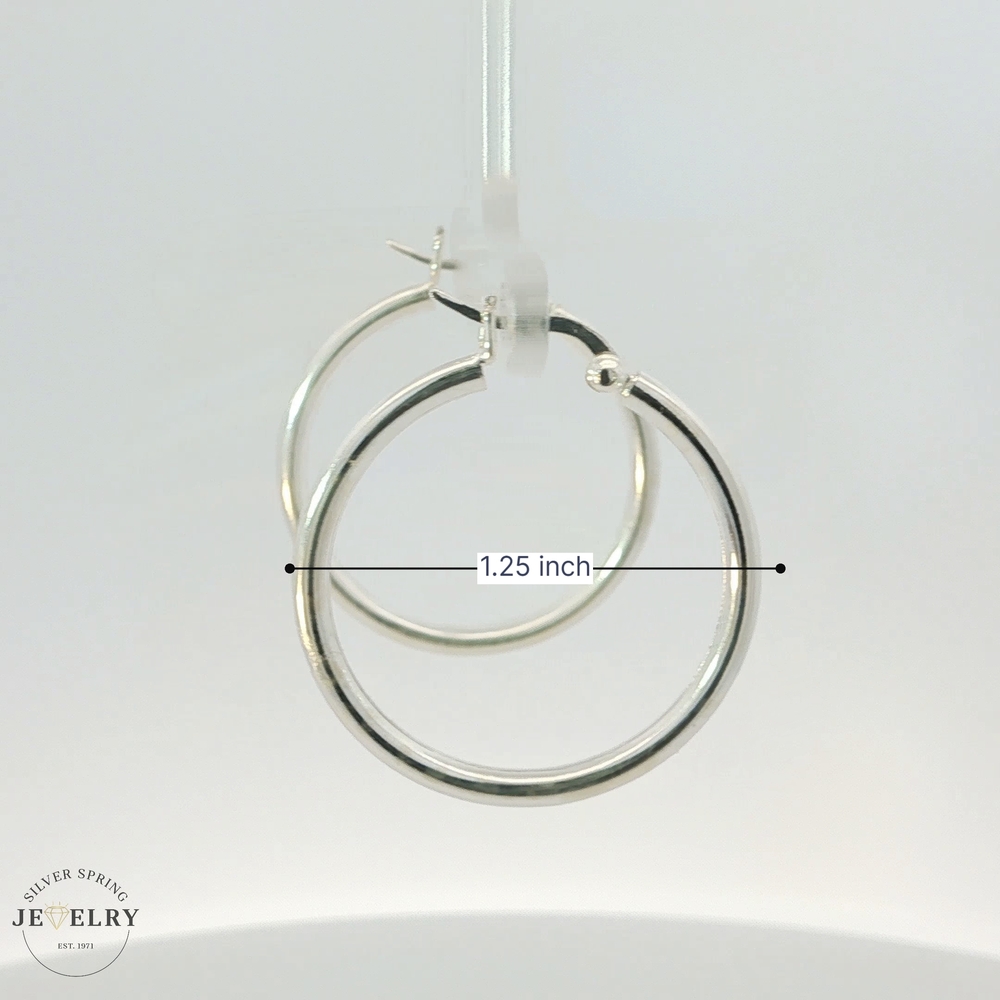 These Classic Silver Hoop Earrings are a timeless addition to any jewelry collection. With a diameter of 1.25 inches, they make a bold statement while still being elegant and versatile. Weighing only 4.6 grams, they are lightweight for comfortable wear, yet they have a solid, high-quality feel. Crafted with meticulous attention to detail, these earrings showcase exceptional workmanship, ensuring they maintain their shine and shape. The hoops effortlessly transition from day to evening wear, complementing both casual and formal outfits. Secured with a simple, reliable clasp, they are designed for everyday use. These classic silver hoop earrings are not only a fashion staple but also a symbol of simplicity and sophistication.