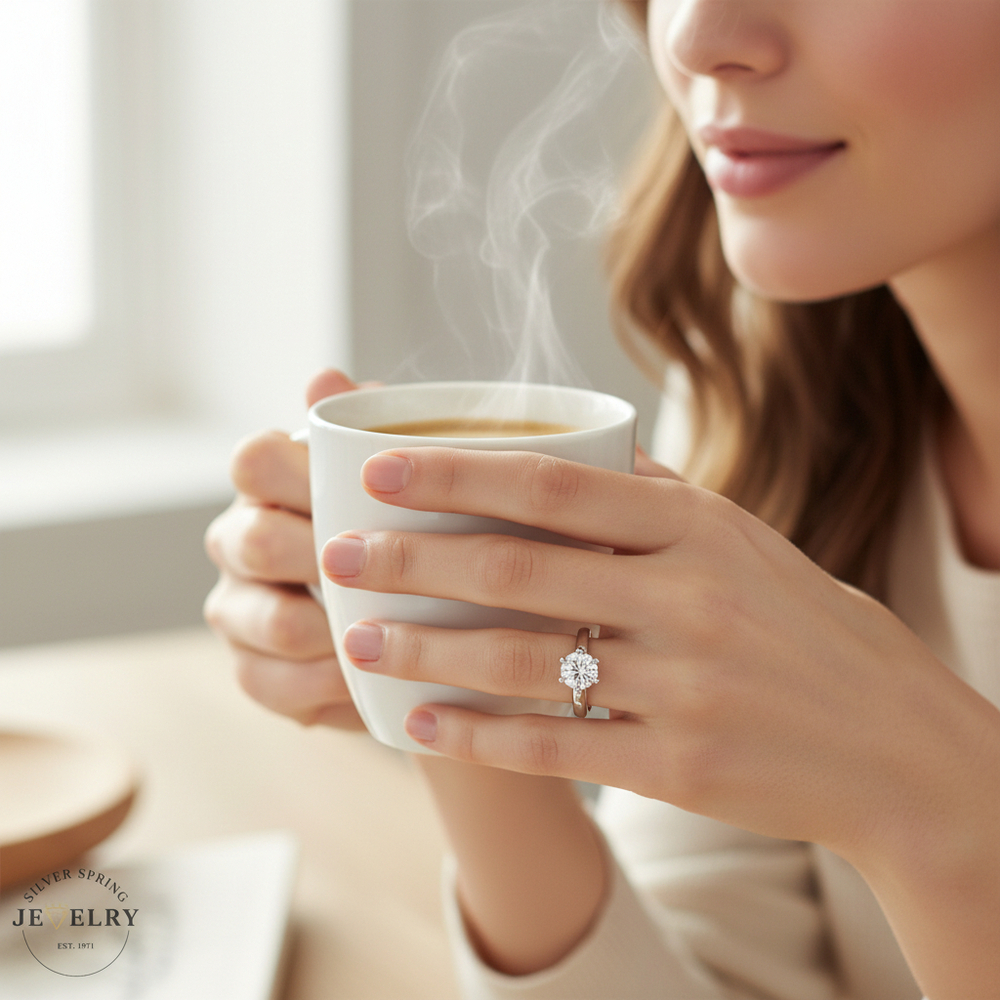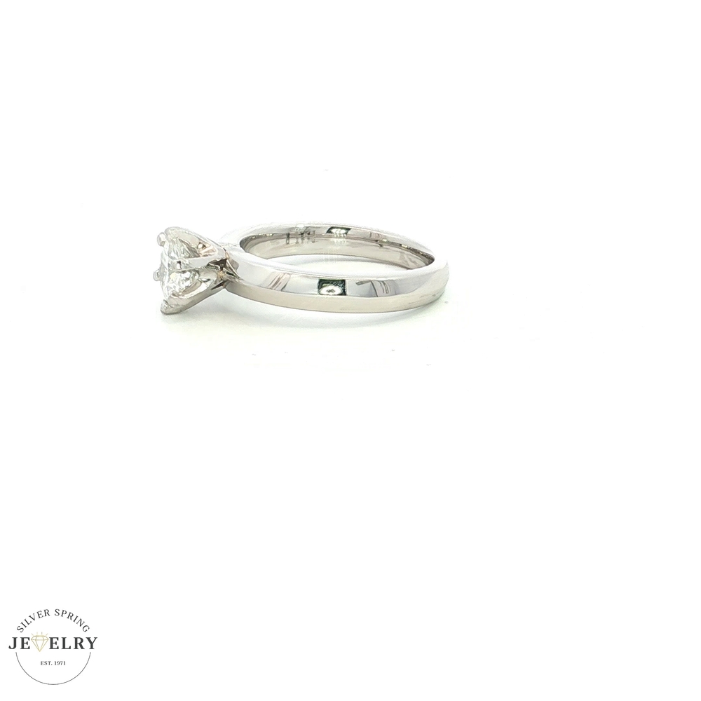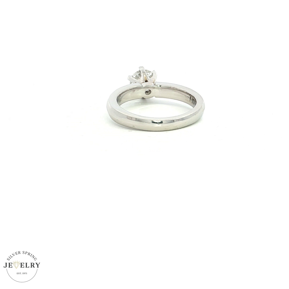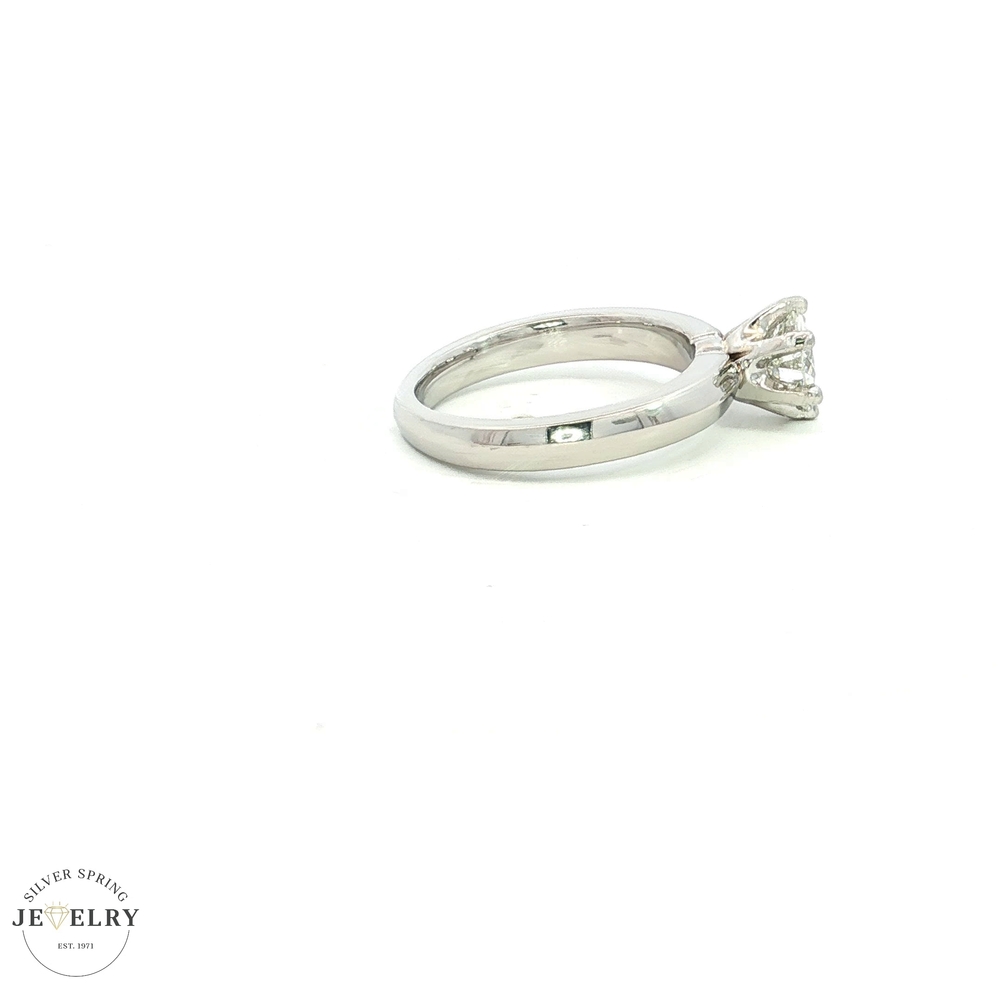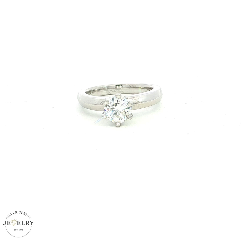 This stunning engagement ring is made from platinum and weighs 9.10 grams. It features a 0.89-carat GIA-certified round solitaire diamond with an H color and SI-1 clarity, radiating exquisite charm. The diamond’s beauty is enhanced by a secure 6-prong setting, ensuring a brilliant sparkle. The ring is size 7, and its simple yet elegant design allows the gemstone to shine at its brightest. With its premium quality and timeless appearance, this ring symbolizes a promise of eternal love and commitment, making it perfect for those who appreciate elegance with a modern twist.